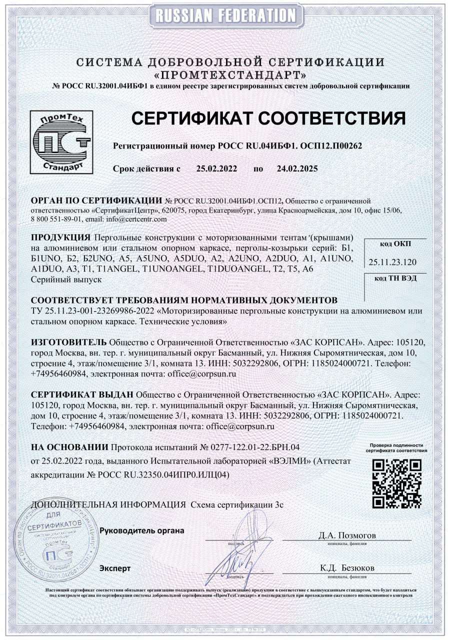 Тентовая пергола серии А UNO - фото 3